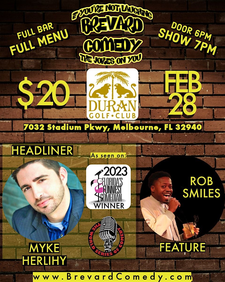 Brevardcomedy brings the laughs to Duran Golf Club!!! Touring professional comedians from Americas Got Talent, K*ll Tony, HBO, Cruiseships