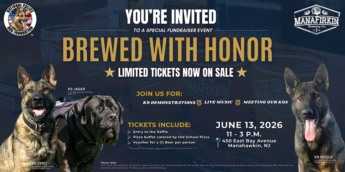 Sip for a cause at Brewed With Honor—where every brew helps support the police K9s who serve with courage, loyalty, and heart. Be part of a mission that raises awareness and funds for the purchase, training, and emergency medical care of active and retired law enforcement K9s nationwide.