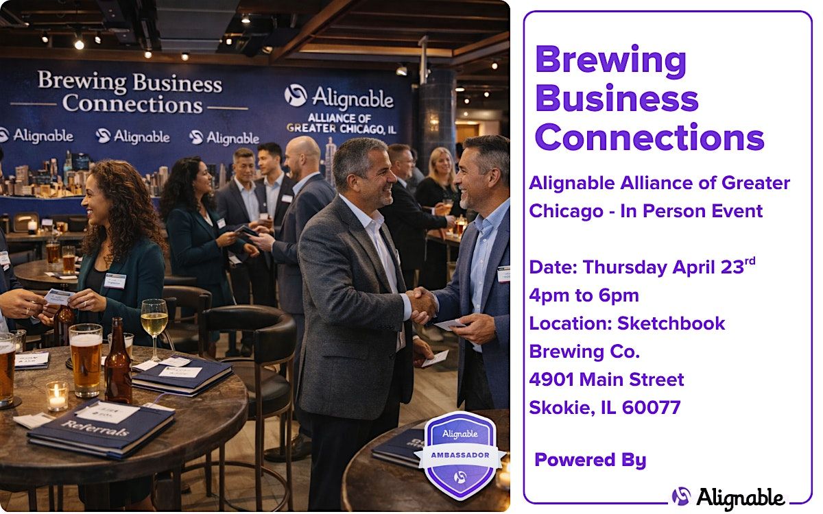 We’re taking it to the north suburbs… and yes, the room is going to be worth it. Join the Alignable Alliance of Greater Chicago as we land at Sketchbook Brewing Co..