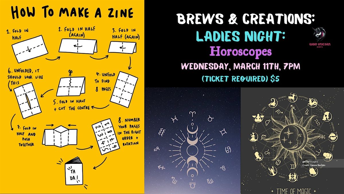 Each participant will receive a zine sheet, decorative papers, and all the supplies you need to bring your zine vision to life. Come create and show off your zodiac signs with it's own zine.