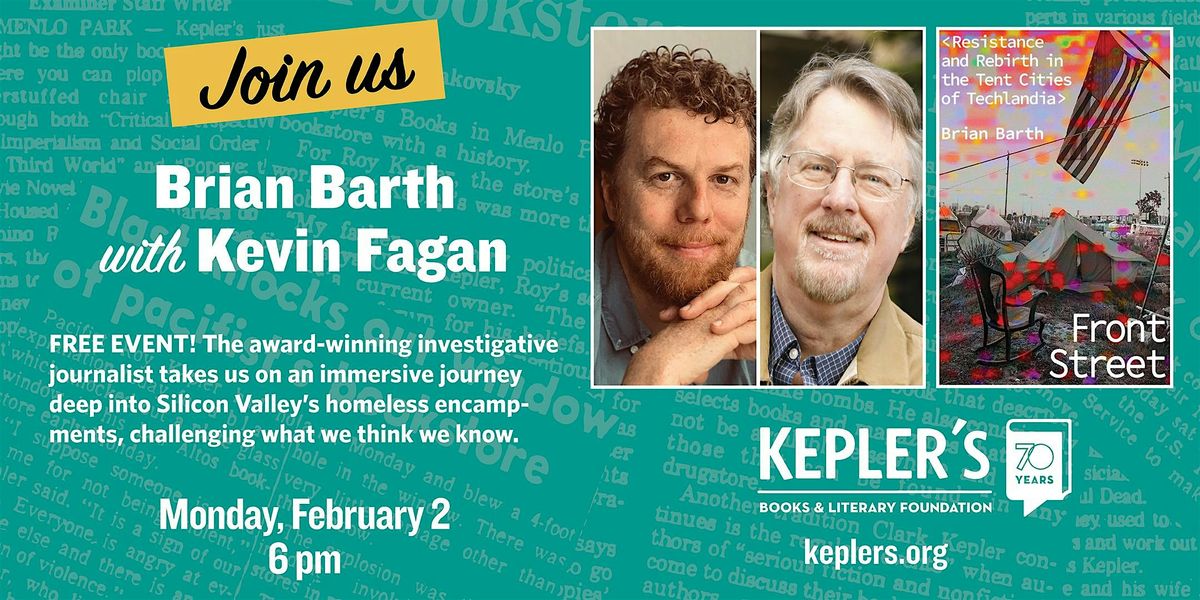 Award-winning investigative journalist Brian Barth joins us to discuss Front Street: Resistance and Rebirth in the Tent Cities of Techlandia. Challenging everything we thought we knew about our unhoused neighbors Front Street takes us on an immersive journey deep into Silicon Valley’s homeless encampments. Brian will be joined in conversation with San Francisco Chronicle reporter Kevin Fagan.