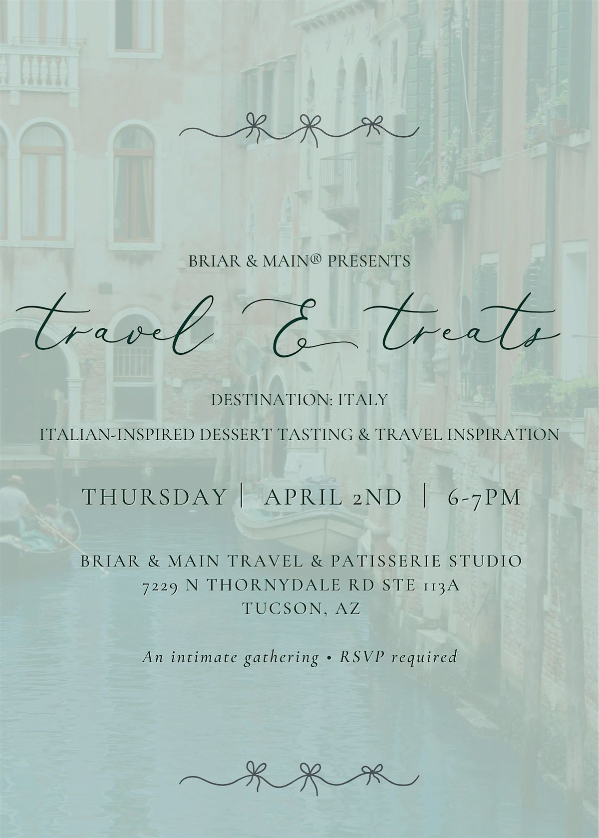 Guests will enjoy Italian-inspired desserts from Briar & Main The Patisserie while learning about thoughtfully designed itineraries, travel tips, and unique experiences for exploring Italy.