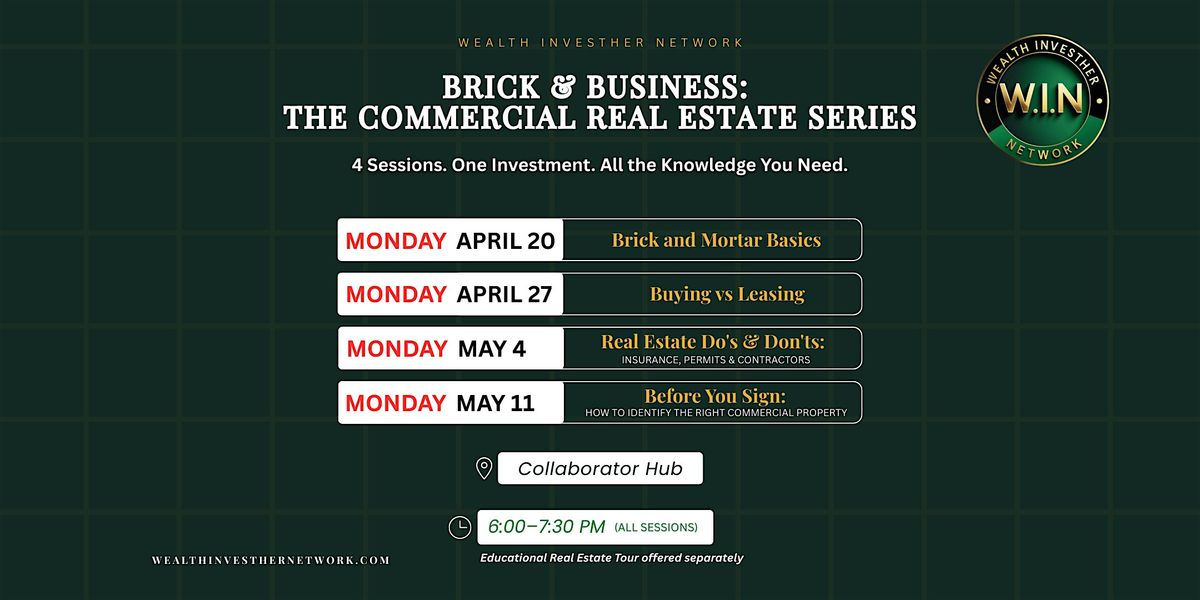 Join the Wealth InvestHer Network for Brick & Business: The Commercial Real Estate Series — a 4-week cohort designed to equip women with the knowledge and confidence to make informed real estate decisions for their businesses.