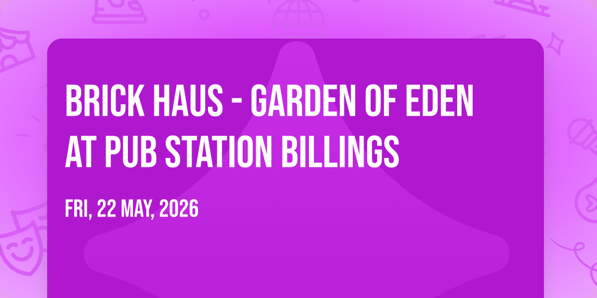 ✨ Enter a world of endless possibilities at Brick Haus - Garden of Eden at Pub Station Billings, where every moment tells a story! 🏛️ The stunning Pub Station Billings in vibrant Billings, MT transforms into a realm of wonder on May 22nd, 2026 at 09:00 PM. 🌟 They have crafted an experience that goes beyond the ordinary, combining elements of surprise, delight, and pure entertainment. Every detail has been thoughtfully considered to ensure your journey with us is nothing short of extraordinary. 🎯 Join fellow adventure seekers and memory makers in this celebration of imagination and innovation. 🎊 Reserve your spot today and be part of something truly special!