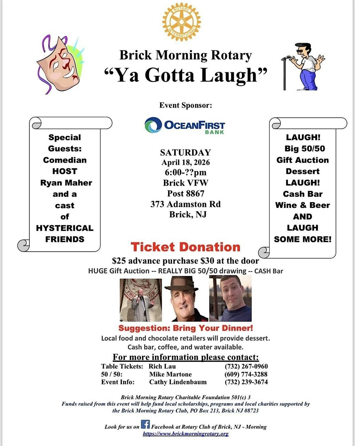 Please contact Rich for seats/tables 732-267-0960- We need to have names of attendees for tables - please contact him before purchasing to make sure we have the seats available.
