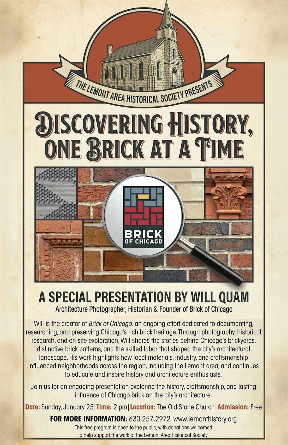 Will Quam is coming to LAHS! Join us for a fascinating look at Chicago brick—its history, craftsmanship, and lasting influence on the city we know today.