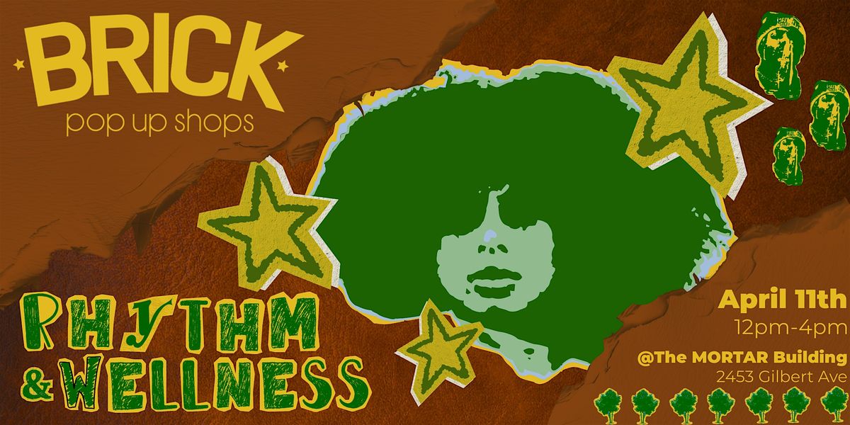 BRICK Pop Up Shops will host the Rhythm and Wellness Pop Up at The MORTAR Building, 2453 Gilbert Ave, on April 11th from 12:00 to 4:00 pm.