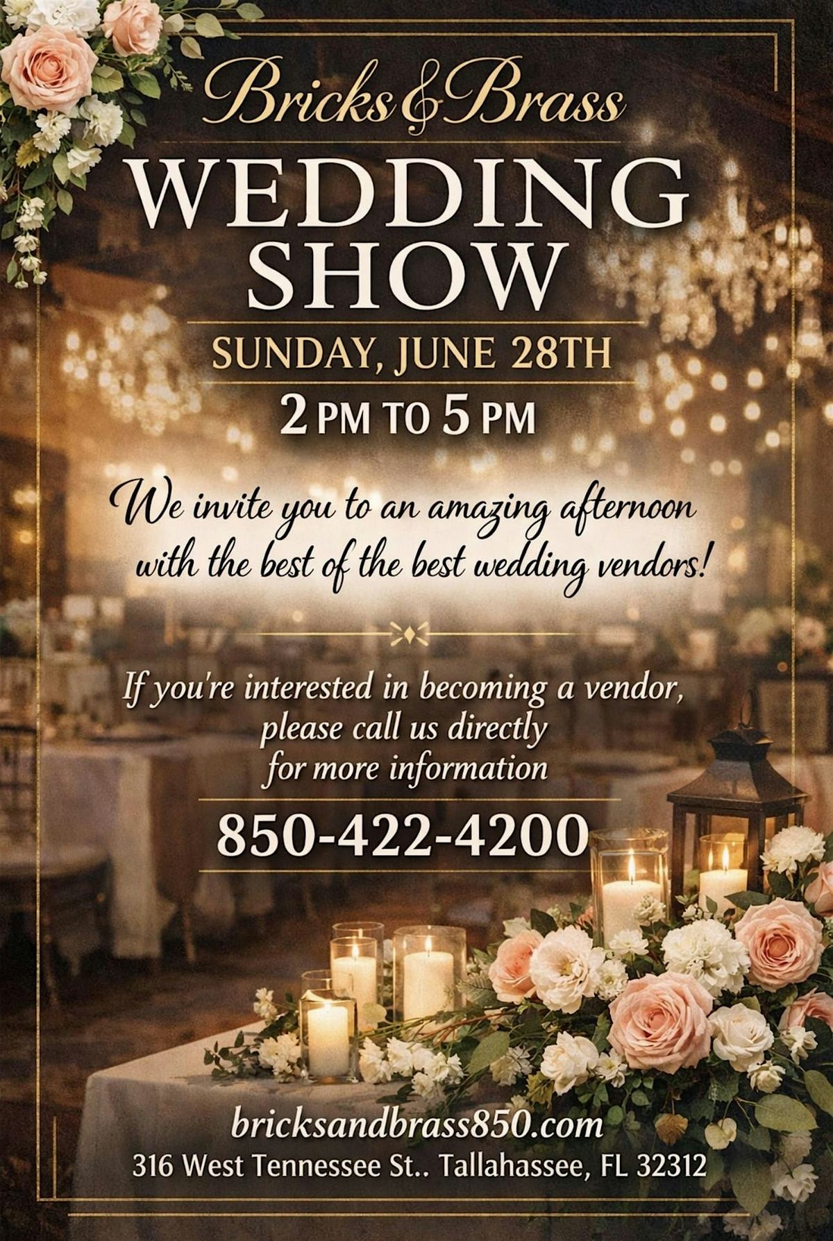 Bricks and Brass, Tallahassee’s premier event space, is hosting an unforgettable Wedding Show this Summer 2026. We’re looking for talented local vendors from florists and photographers to bakers, planners, and boutique designers to showcase your services to engaged couples planning their dream day.