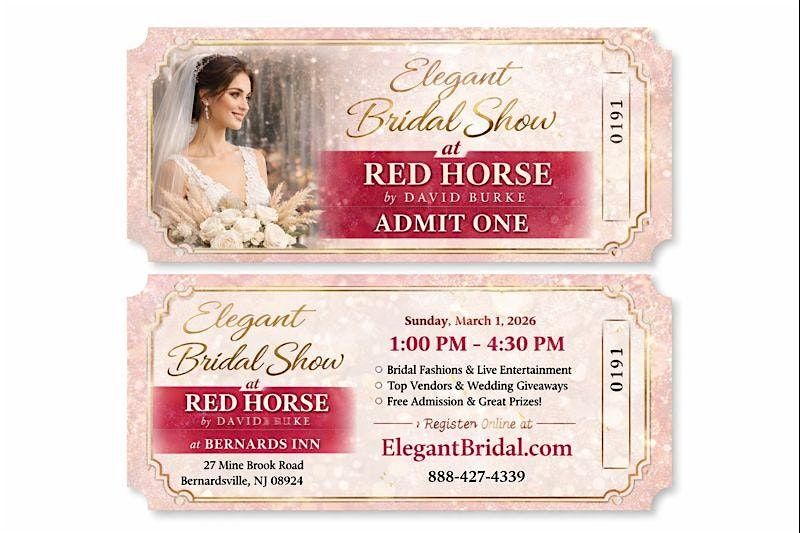 Get ready for an unforgettable Bridal Show right at the beautiful Red Horse by David Burke at Bernards Inn! Meet amazing vendors, discover stunning wedding ideas, and get inspired for your big day. This is an in-person event, perfect for brides-to-be looking to make their dream wedding come true. Don't miss out on this fun and laid-back bridal experience!