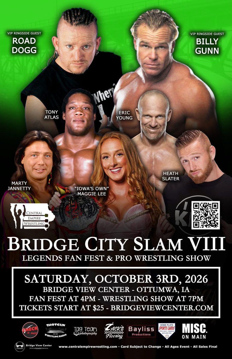 🎉 Welcome to Bridge City Slam VIII at Bridge View Center, where dreams come alive and possibilities are endless! 🏛️ Join us at Bridge View Center in the heart of Ottumwa, IA for an event that defies expectations. 📅 On October 3rd, 2026 at 04:00 PM, be part of something truly extraordinary as we bring together innovation, entertainment, and pure magic. ✨ Every aspect has been carefully designed to ensure an unforgettable experience for all our guests. Whether you're seeking adventure, inspiration, or simply a break from the ordinary, this event promises to deliver beyond your wildest dreams. 🎊 Prepare for a journey into the extraordinary!
