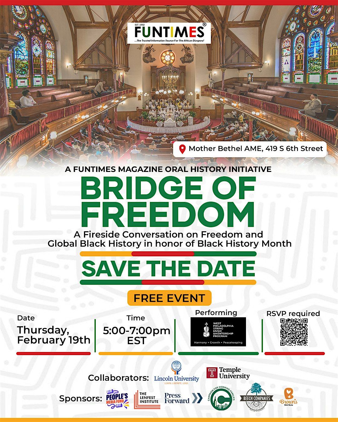 In celebration of Black History Month, FunTimes Magazine presents a fireside conversation exploring Bridge of Freedom, an oral history initiative that reframes the story of American independence by connecting it to the global Black liberation movement.
