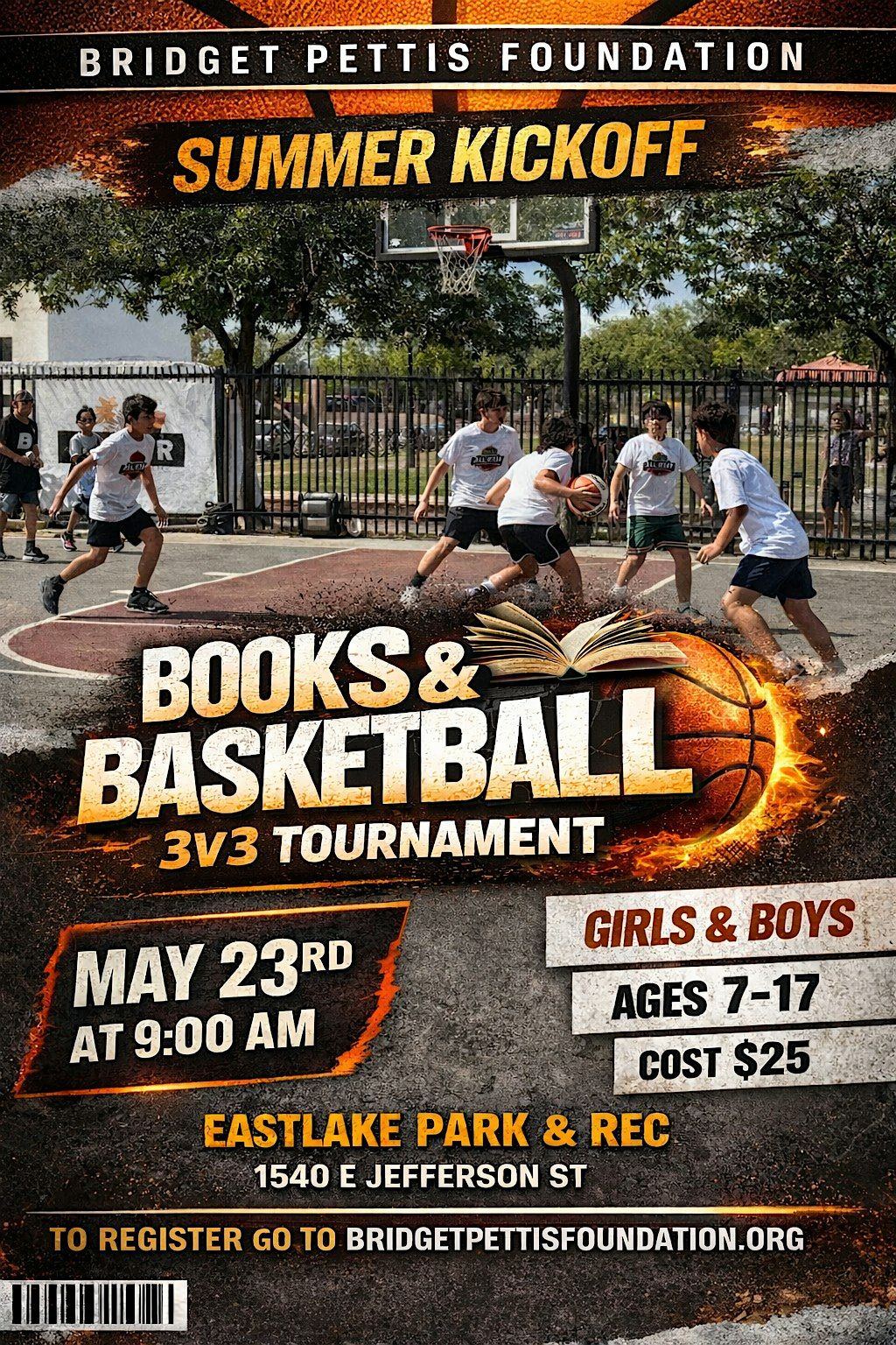 Join the Bridget Pettis Foundation for our Books & Basketball Summer Kickoff 3-ON-3 Tournament, where youth come together to Compete, Connect, and Grow both on and off the court.