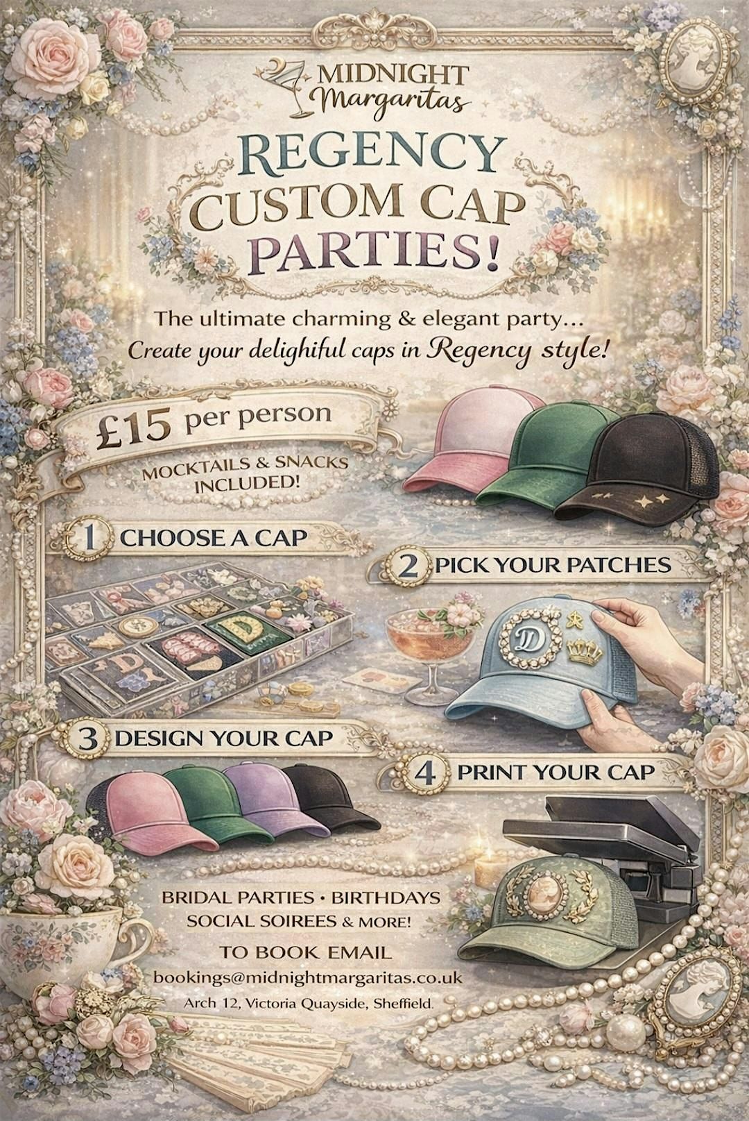 Ready for a night inspired by Bridgeton? Join us for an awesome in-person event where you can sip on cocktails that scream vintage charm and modern flair. It’s all about good vibes, great drinks, and that stylish Bridgeton spirit. Don your best outfit, bring your crew, and let's make it a night to remember! Not only will you sip our Lady Featheringtons Fizz Margarita you get to create your very own regal cap at our themed cap bar. Mocktails also available throughout the session.