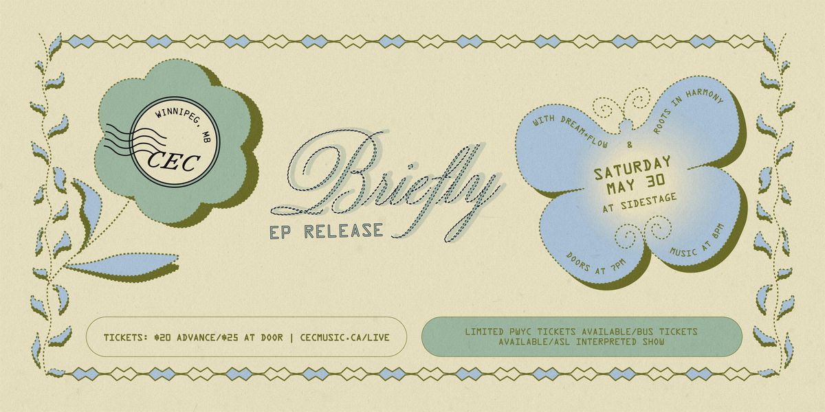 Enter the world of BRIEFLY at CEC's EP Release show on May 30th at Sidestage. This collaborative and interactive show will include community tables from Good + Plenty Producers Club, The Love Post, and Roots in Harmony.