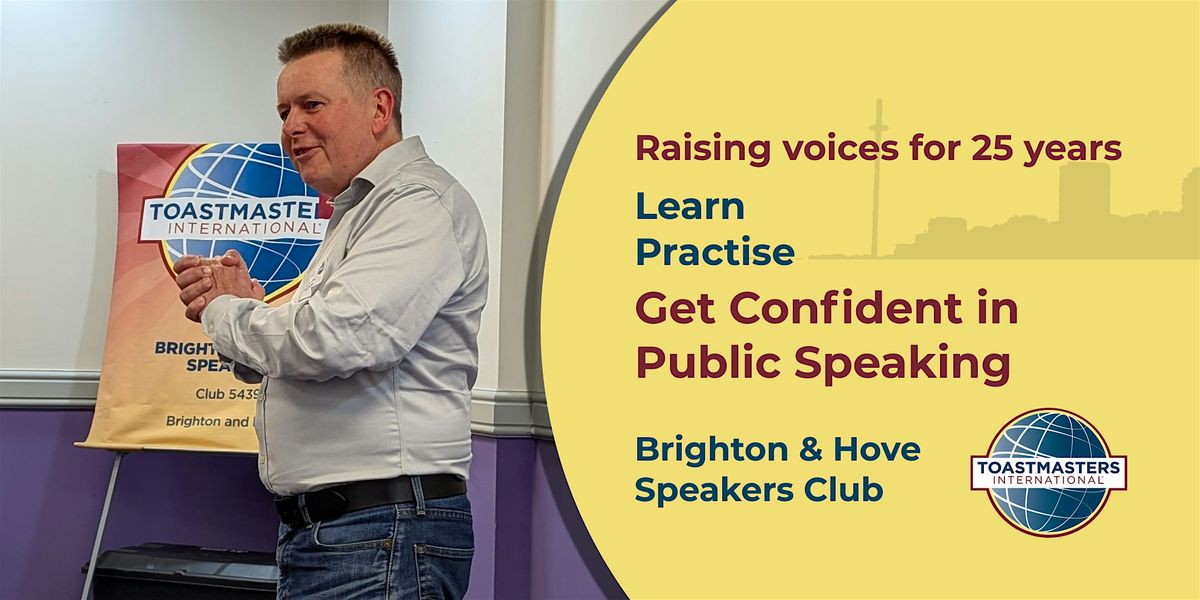 Join us as a guest for FREE at this in-person event hosted by Brighton & Hove Speakers Club: the Toastmasters public speaking club for the seaside city.