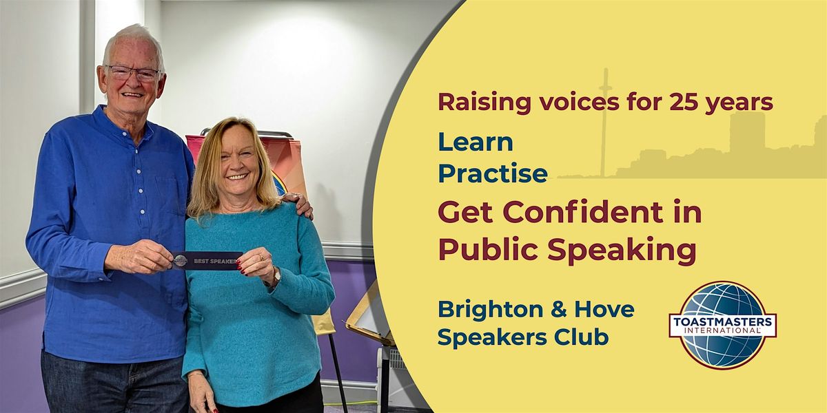 Join us as a guest for FREE at this in-person event hosted by Brighton & Hove Speakers Club: the Toastmasters public speaking club for the seaside city.