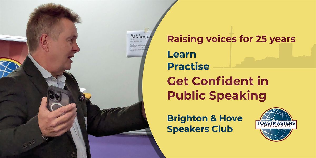 Join us as a guest for FREE at this in-person event hosted by Brighton & Hove Speakers Club: the Toastmasters public speaking club for the seaside city.