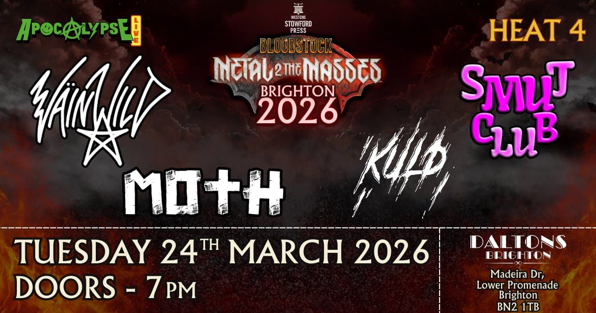 Metal to The Masses is an initiative where the winner will represent Brighton on the New Blood Stage at Bloodstock Festival. Bloodstock will be celebrating its 25th Anniversary and this year is set to be bigger, louder and heavier than ever! The winner will play alongside metal giants Saxon, Judas Priest, Lamb of God and so many more! 🔥On entry you will receive a voting slip where you will need to vote for your top 2 favourite bands of the night. The top 2 will then be put to our industry judges who will decide who will move forward to our first Semi Final! on May 19th
