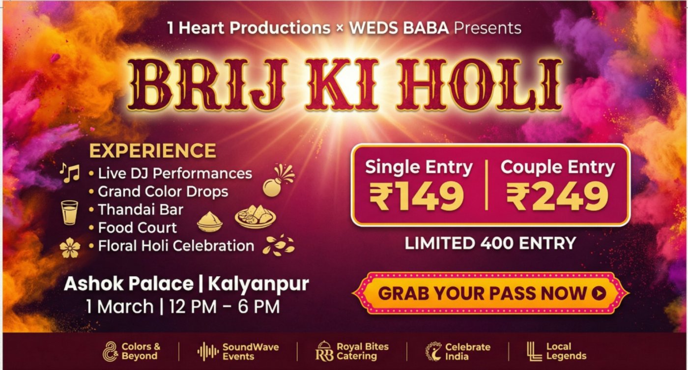 1 Heart Productions × WEDS BABA brings you a colorful and energetic Holi festival at Ashok Palace, Kalyanpur.