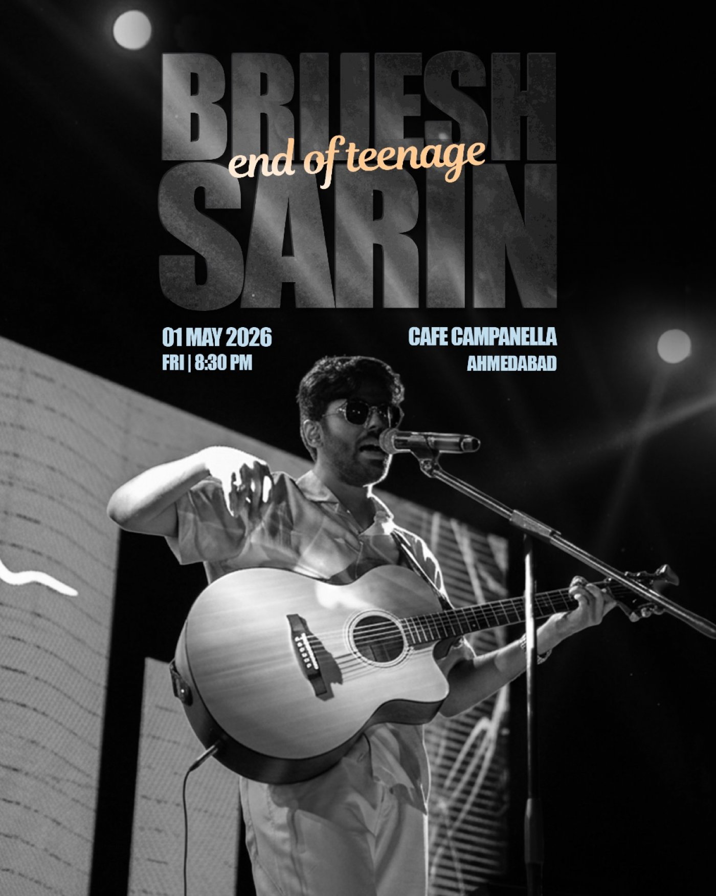 Ahmedabad’s own singer-songwriter and producer, Brijesh Sarin, takes the stage for a one-night-only premiere of his highly anticipated album, End of Teenage.