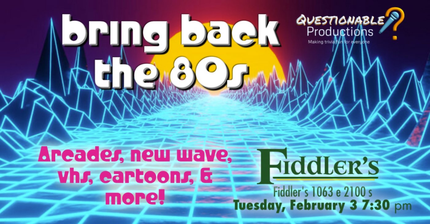Questionable Productions brings the perfect mix of nostalgia and challenge, so whether you lived through the 80s or just wish you had, you’ll feel right at home on Tuesday, February 3rd at Fiddler's. Whether you worship at the altar of MTV, can quote every John Hughes movie, or just know your 80s facts by cultural osmosis, this game has something for everyone.
