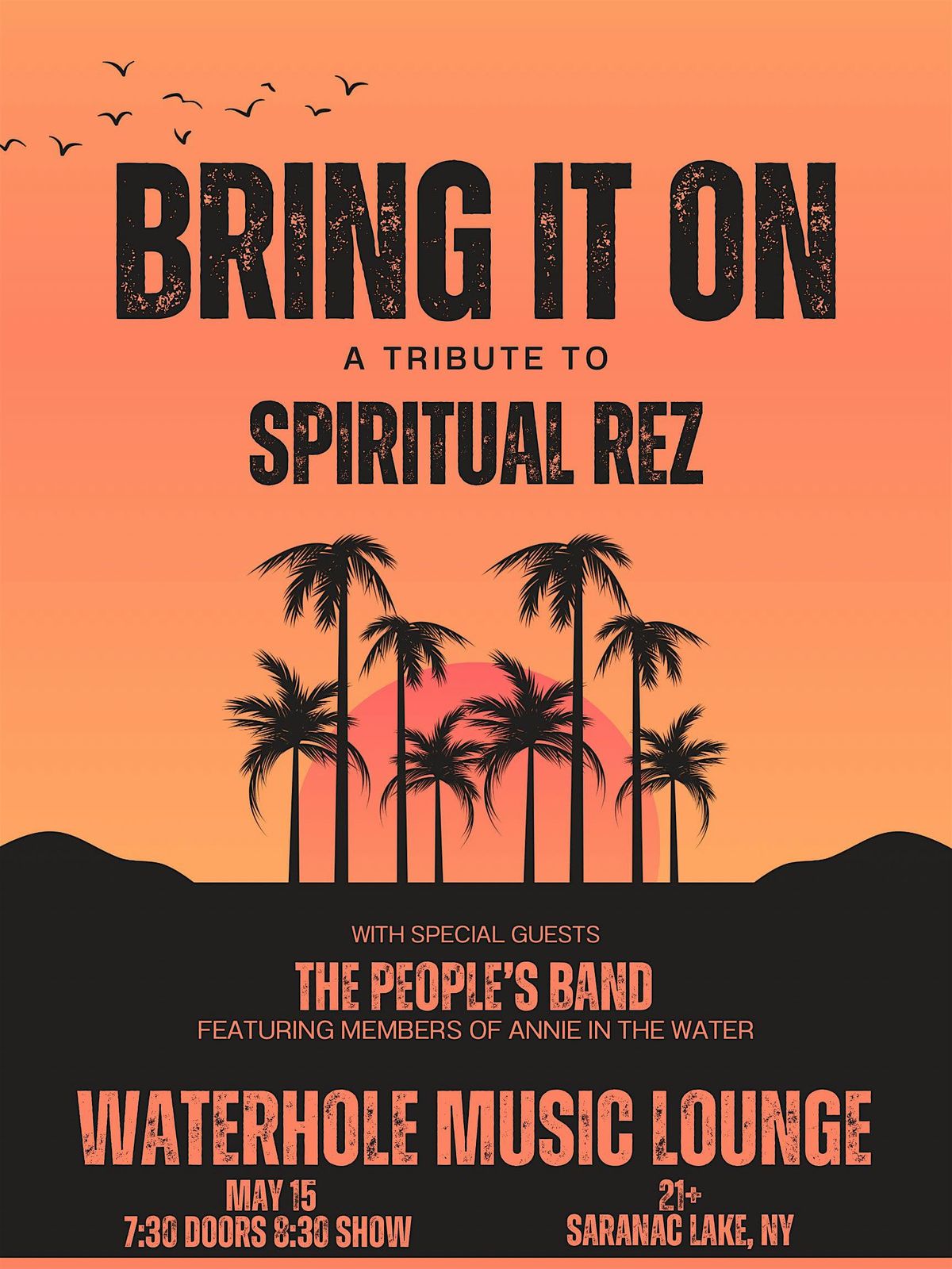 Bring it On: A Tribute to Spiritual Rez featuring members of Annie in the Water, Joshua West Band, Satyrdagg and more! Honoring the music and live energy of longtime northeast favorites Spiritual Rez with heavy hitting grooves and infectious horn lines, this group promises to keep you dancing all night long!