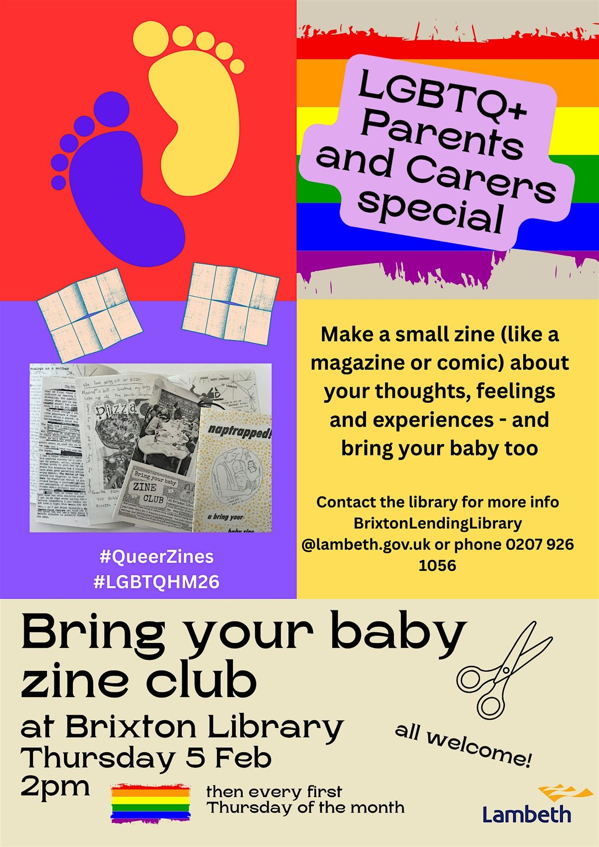 Join us at Brixton Library for the Bring Your Baby Zine Club — a relaxed, baby-friendly space where grown-ups can make, share, and explore zines while your baby can snooze, play or coo nearby. Best for parents and carers of babies under 12 months - but older children welcome too.