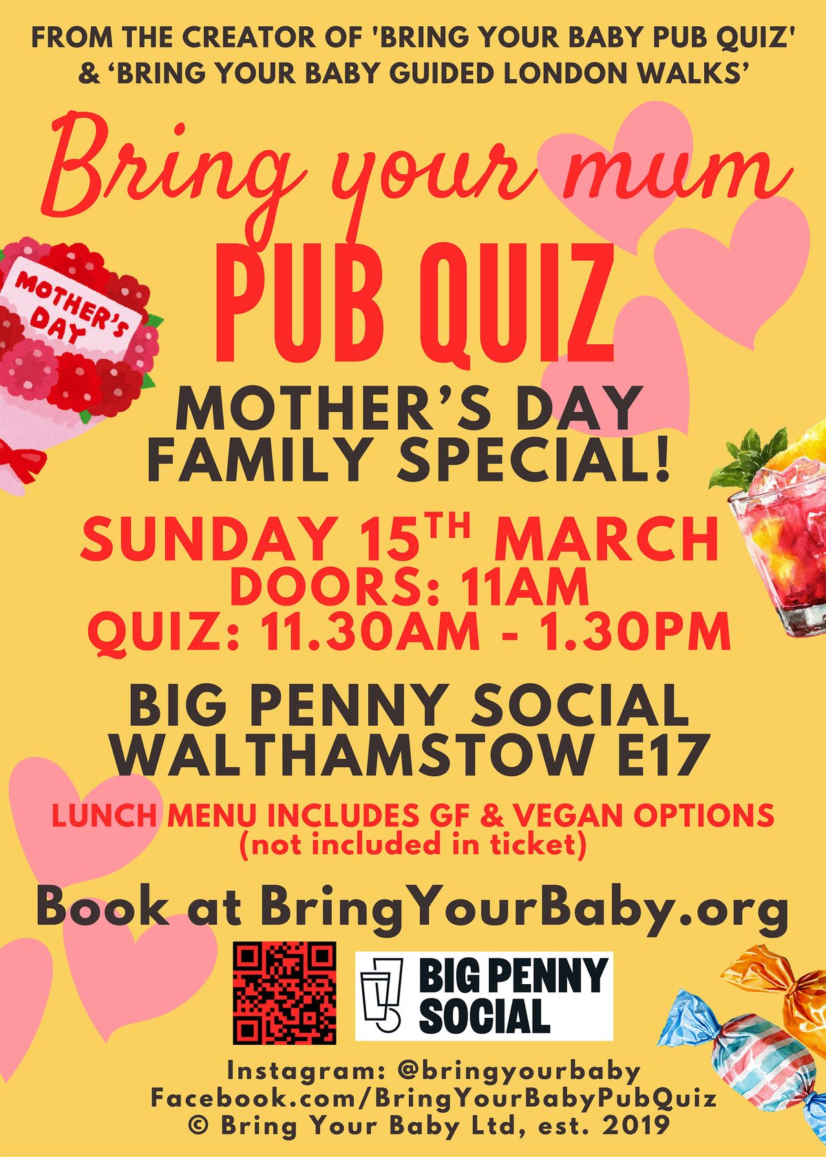 Hosted by 'Bring Your Baby Pub Quiz' supremo Anthony, 'Bring Your Mum Pub Quiz' has been designed to be inclusive for all generations, and everyone is welcome - whether they're your child, your grandparent, your best friend, or your next-door neighbour.