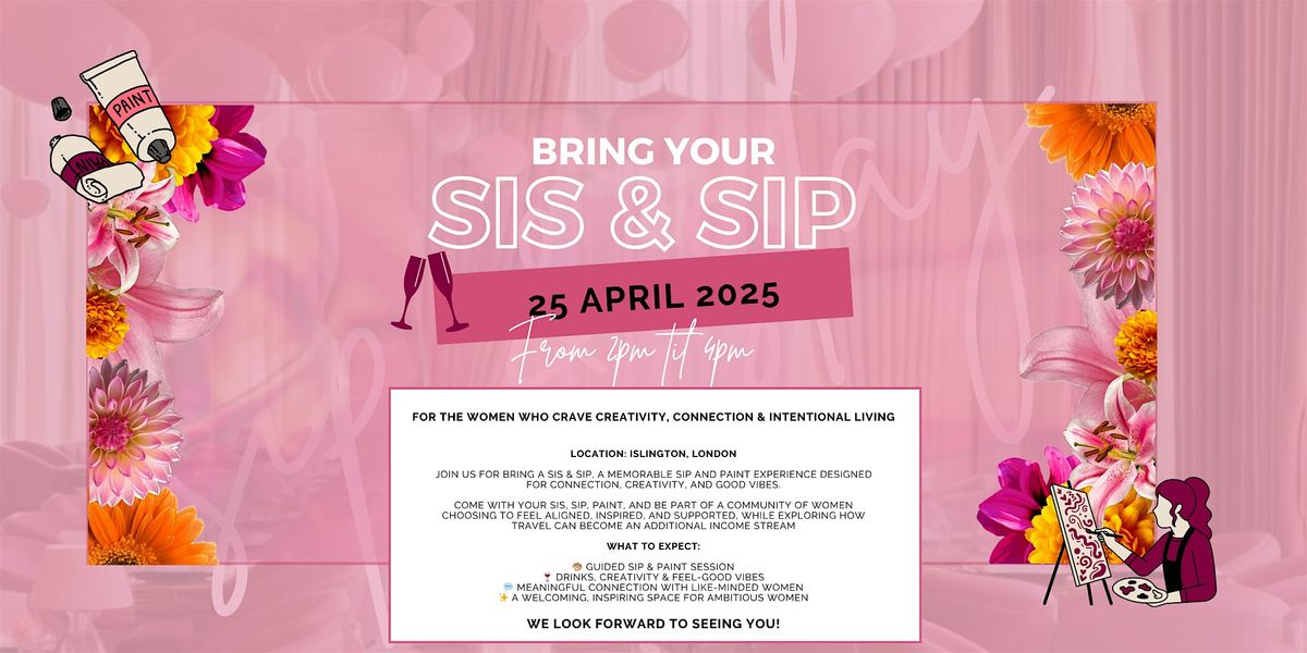 Join us for Bring a Sis & Sip, a memorable sip and paint experience designed for connection, creativity, and good vibes.About this Event