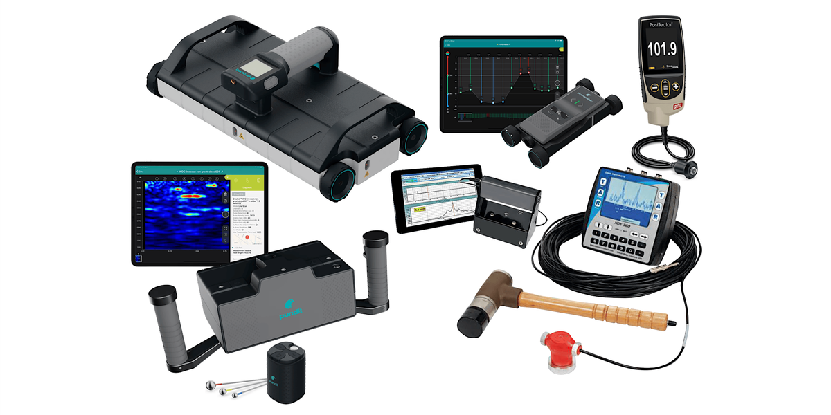 • Defect detection techniques including Ultrasonic Pulse Echo (UPE), Impact Echo (IE), Slab Impulse Response (SIR) and crack measurement