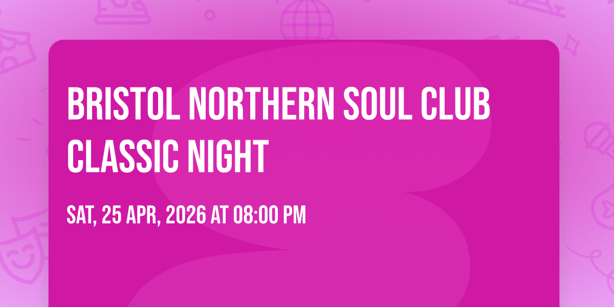 Set in the retro Eastville Social Club - this special venue tucked away in Ikea Carpark is the perfect setting to bring the 70's right up to date with an Classic Northern Soul Oldies event. This venue has a shiny parquet floor with tables around the room and a bar where pints are just 3.70. Join us for a line of 6 top Northern Soul DJs and bring your friends for a fun night out. EVERYONE IS WELCOME!!