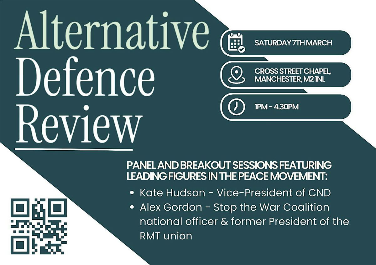 Based on CND’s recent Alternative Defence Review, this conference aims to raise awareness of militarisation and its wider impact on the Northwest and to come up with concrete strategies for taking the TUC motion into workplaces and communities focusing on developing practical ideas on: