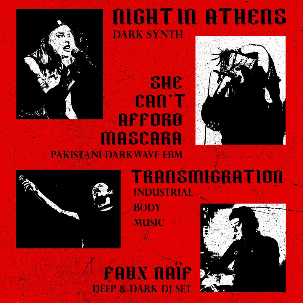 Join us at CLUB CHEEK for a sorcery-fueled night of darkwave and EBM. Night in Athens, She Can't Afford Mascara, Transmigration, Faux Naif til 3amArtists