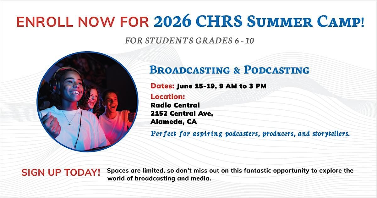 Join us for an incredible week at the CHRS Broadcasting & Podcasting Camp! This unique program offers students the chance to learn from seasoned industry professionals. Collaborate with peers to create and produce content using professional and vintage recording equipment. Develop your skills in crafting engaging segments tailored to specific audiences and distribution platforms.