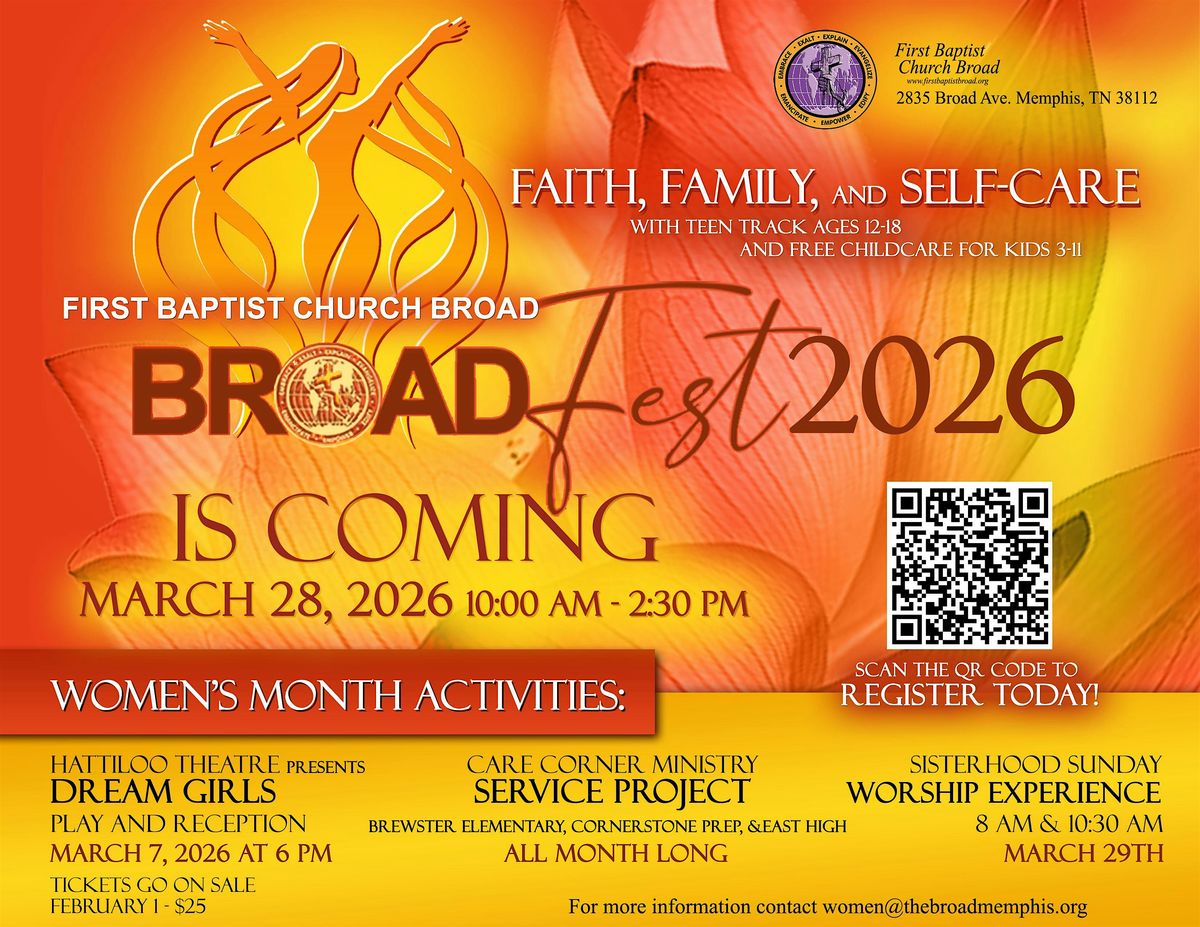 Saturday, March 28 | Our Flagship Activity It’s back for the 4th consecutive year! Join us as we celebrate Faith, Family, and Self-Care—the BROAD Way.