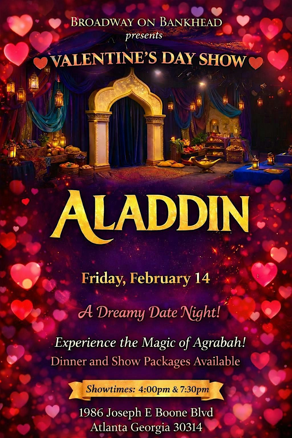 Broadway on Bankhead proudly presents Aladdin, a high-energy, romantic stage production filled with magic, music, humor, and heart. Follow Aladdin on a thrilling adventure of self-discovery, friendship, and love, brought to life by a talented cast of youth performers in our intimate 21-seat black box theater.