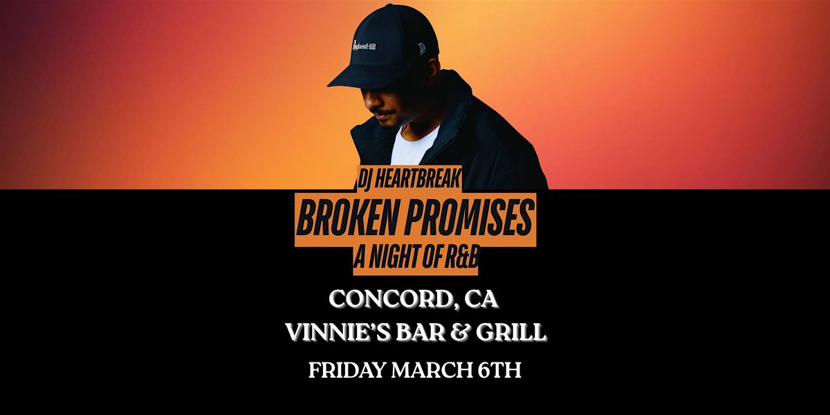 Broken Promises: A Night of R&B with DJ Heartbreak, March 6 at Vinnie’s Concord. $15 pre-sale, $25 door. Tables available. 21+ valid ID.