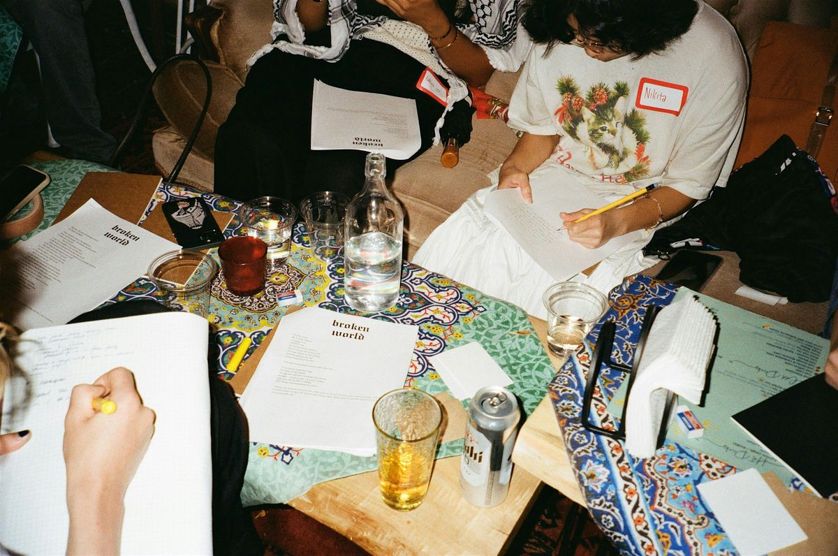 Broken World is a space for Toronto poets to connect, collaborate, and share their work with one another. This evening consists of an intimate poetry community mingle where you can meet new friends and spend time with old ones, with themed poetry prompts available around the space to inspire you to create new work, followed by an open mic to close out the night. Feel free to write by yourself, chat with others, grab a drink, listen to other people's work, or collaborate on poems in groups!