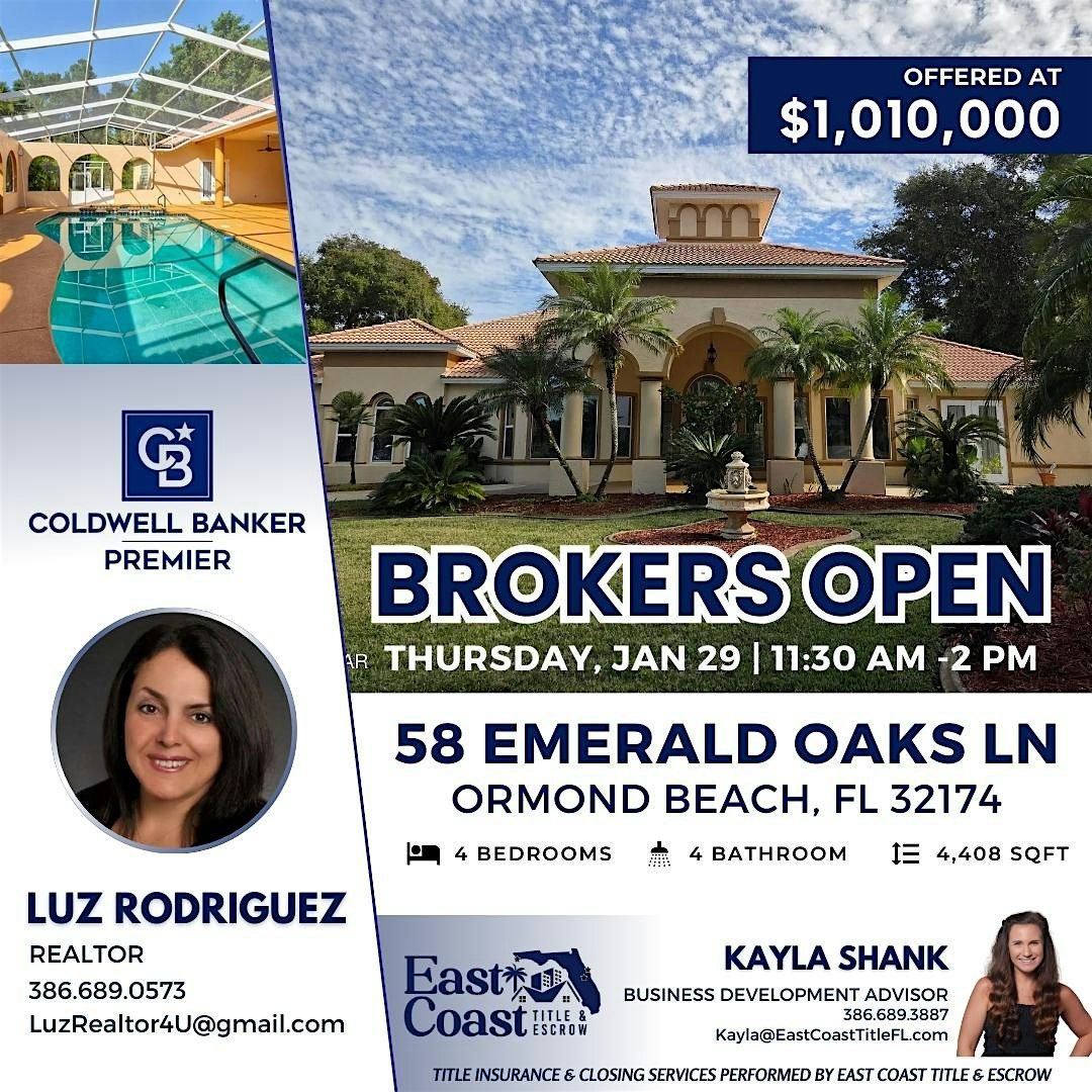 Join us Thursday, January 29th for an exciting in-person event at 58 Emerald Oaks Ln, Ormond Beach. This is a perfect opportunity to check out the property, network with other brokers, and get the inside scoop. Don't miss out on making valuable connections and exploring this great listing firsthand. See you there!