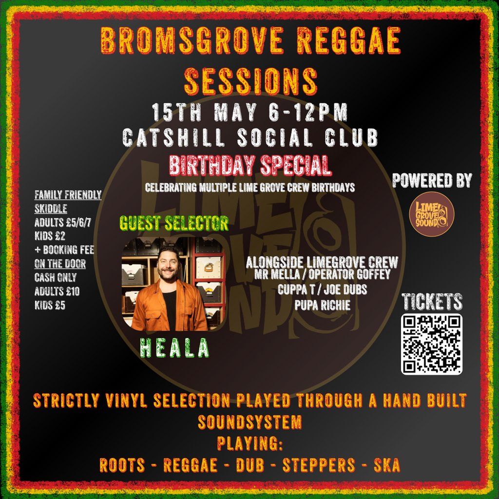 Back for its 3rd installment, Bromsgrove Reggae Sessions returns for a Lime Grove Crew Birthday special alongside Special Guest Heala.Music Genres : Reggae, Dub