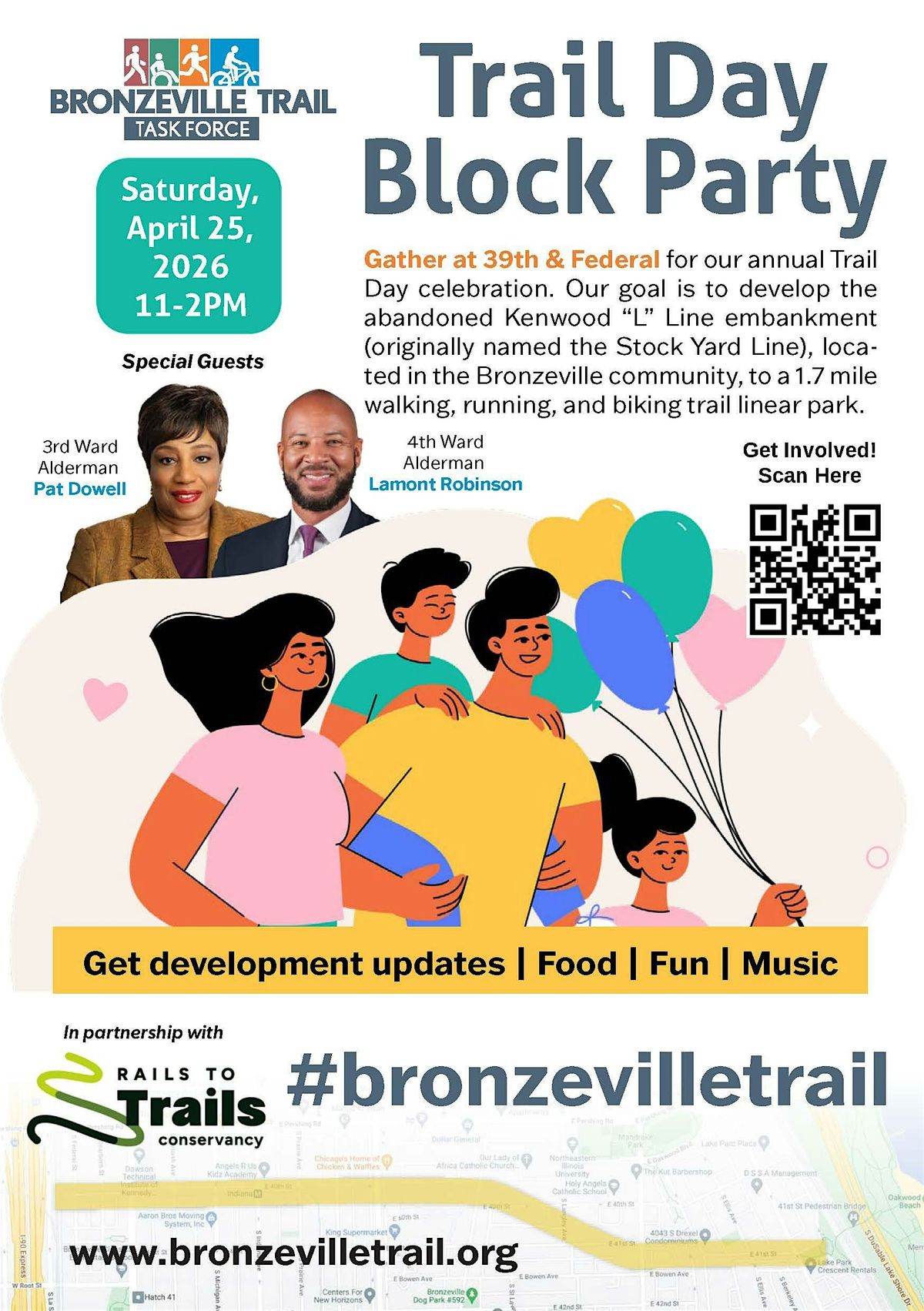 Join the Bronzeville Trail Task Force for a day of family fun and learn about the development of the Bronzeville Trail, transforming the abandoned Kenwood āLā Line embankment (originally named the Stock Yard Line) to a 1.7-mile walking, running, and biking trail linear park.