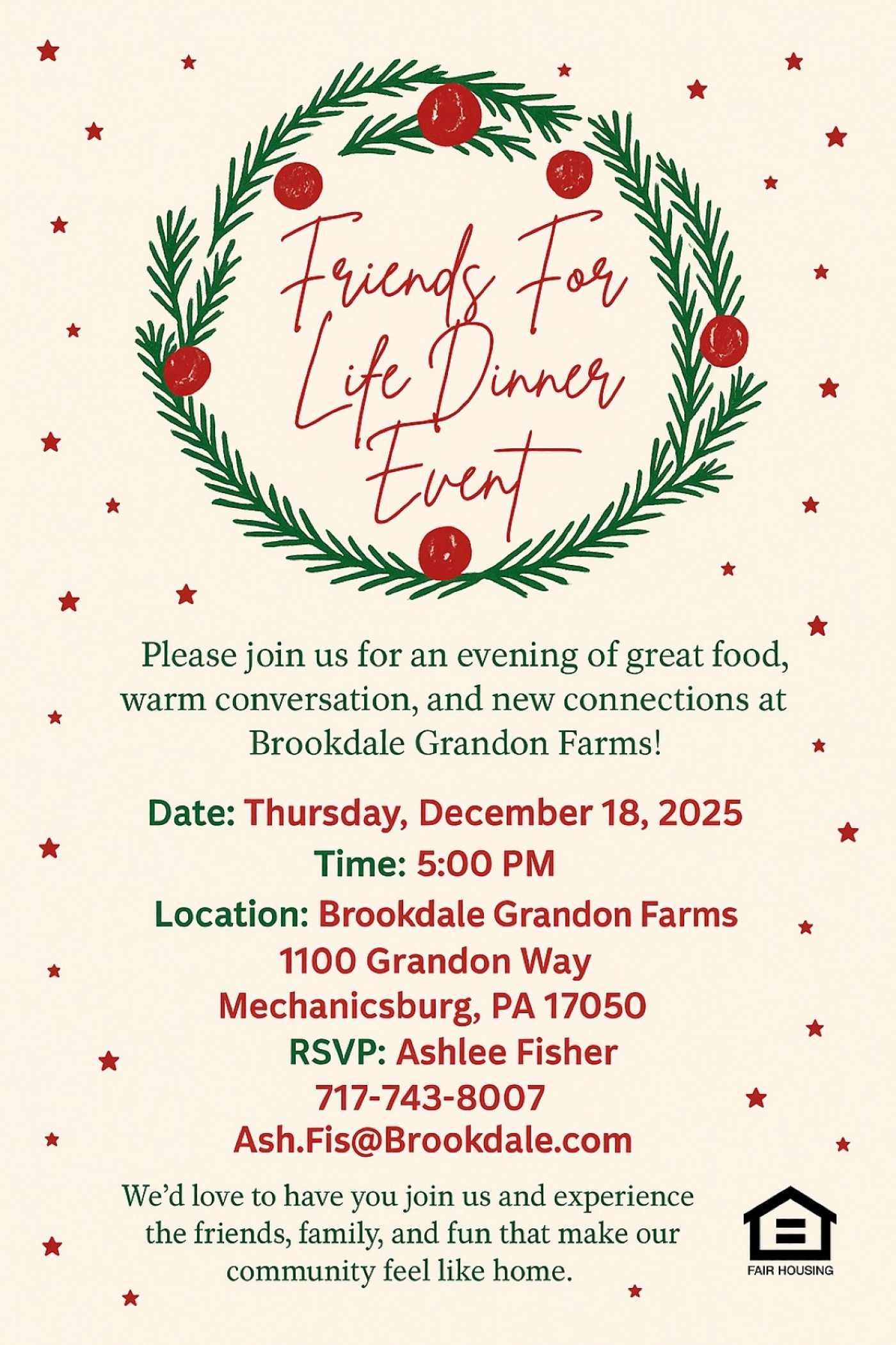 Join us for a warm and memorable evening at Brookdale Grandon Farms as we celebrate lasting connections, cherished memories, and the joy of friendship.