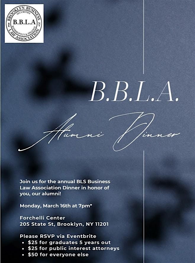 Ticket prices are newly mandated by Brooklyn Law School across all alumni dinners. Tickets for alumni dinners are $25 for recent graduates (5 years out) and public interest attorneys and $50 for everyone else.