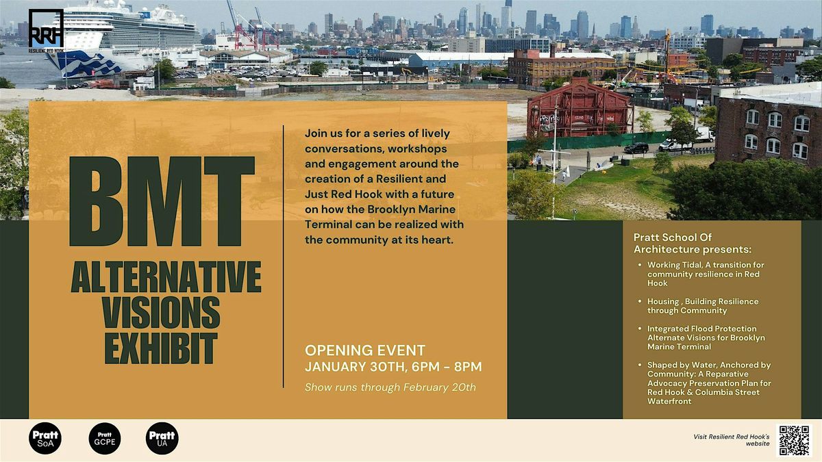 Hosted by Resilient Red Hook in collaboration with Pratt Institute’s Graduate Center for Planning and the Environment, this free public event invites you to engage with a compelling exhibit, share your ideas, and join a growing conversation about what’s at stake in the transformation of this critical 122-acre site.