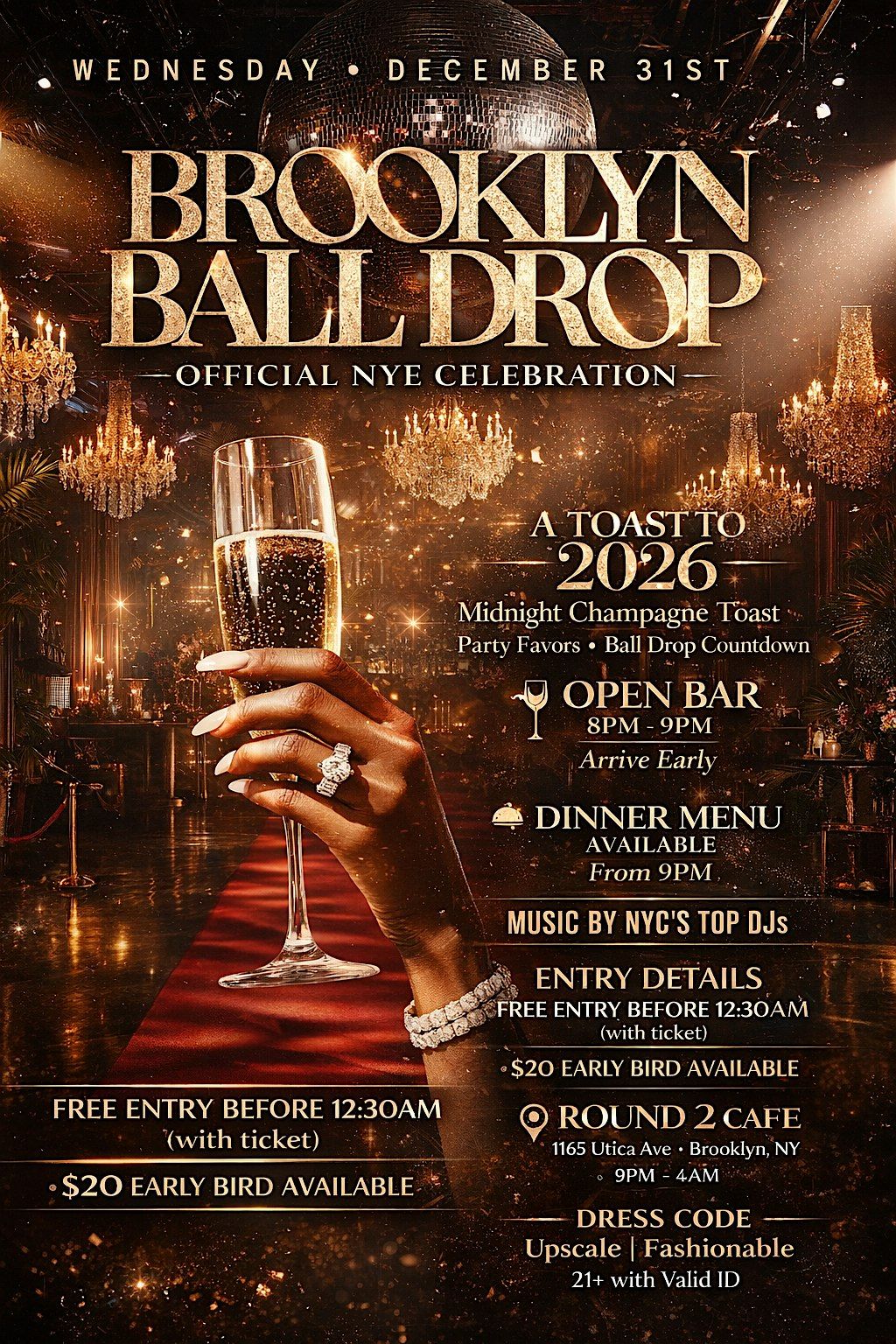 Join us at Round 2 Cafe for an elevated Brooklyn NYE Ball Drop Experience, where the drinks start flowing early, the kitchen stays open, and the celebration builds all the way to a midnight champagne toast and unforgettable countdown.