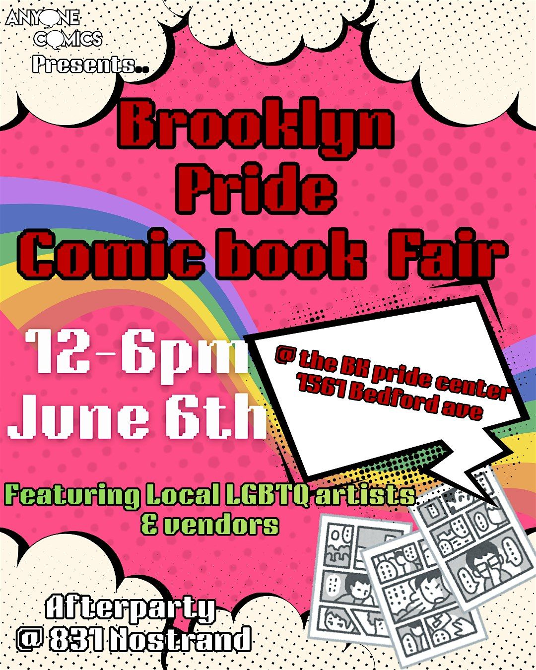 Join us for a vibrant showcase featuring a diverse array of local comics, creators and more. Come show your support and immerse yourself in the creativity of Brooklyn's LGBTQIA+ scene!