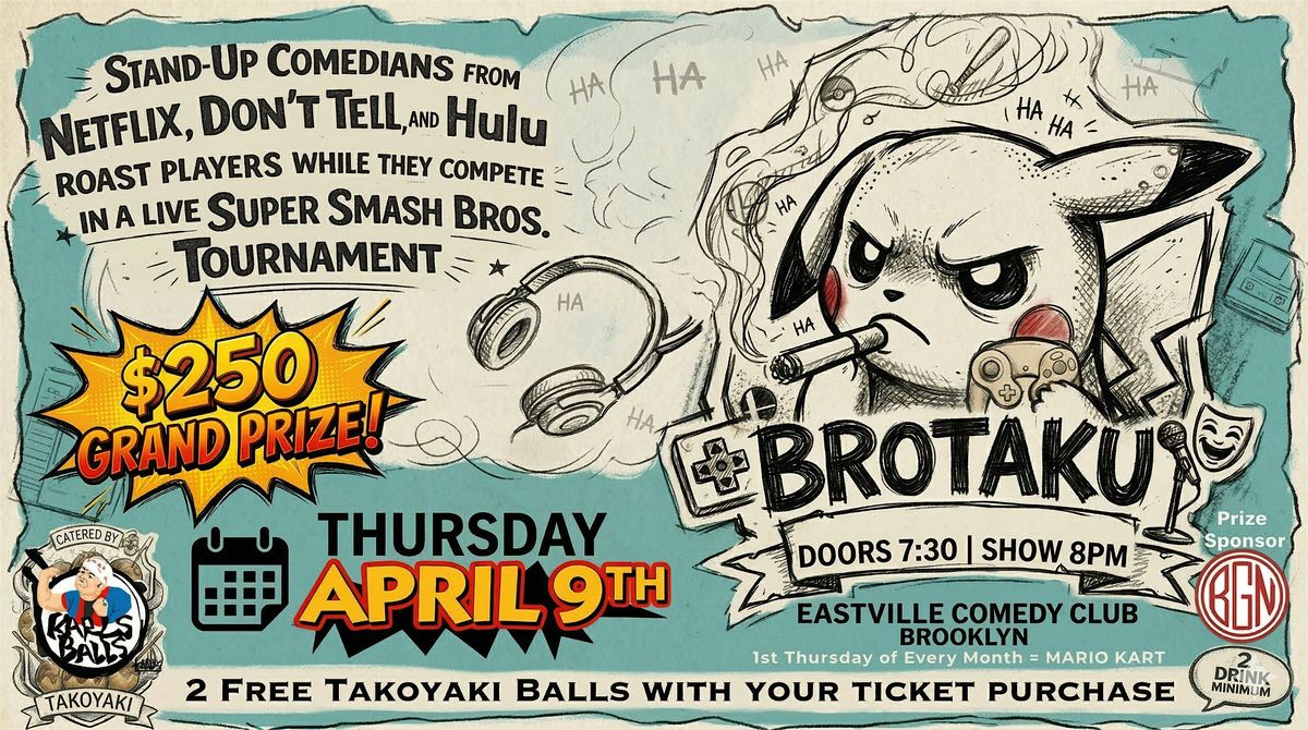 Brotaku is a live comedy show where stand-up comedians provide hilarious commentary over a real video game tournament.
