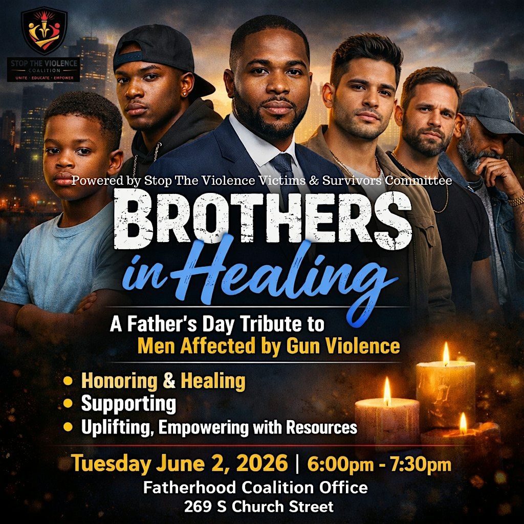 The Stop the Violence Coalition invites fathers, brothers, sons, and men in our community to join us for a powerful evening of connection, healing, and support.
