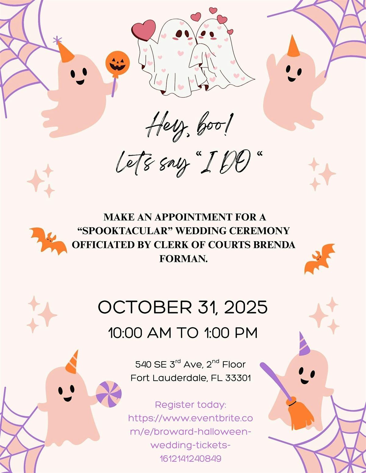 Couples who want to tie the knot can dress in their Halloween best, or stick to traditional attire, and get married by our very own Clerk of Courts Brenda Forman. It's going to be spooktacular!