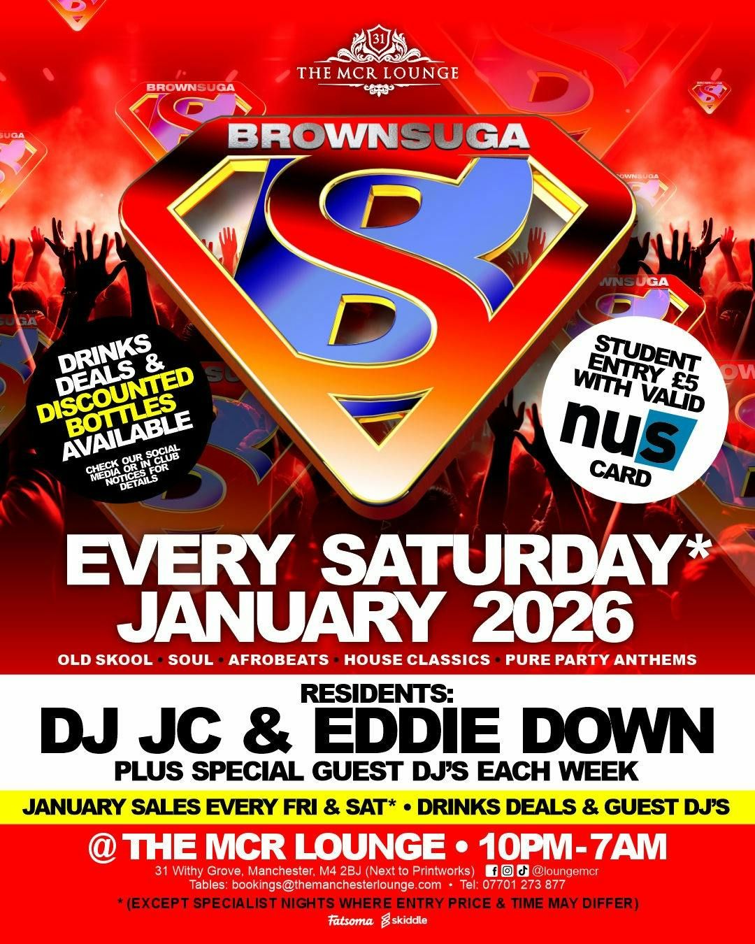 Brownsuga Party hosted by DJ JC, Eddie Down & special guests bringing you the very best in RnB, Afrobeats, Bashment and more until 7am!Remember there ain’t no party like a Brownsuga Party!